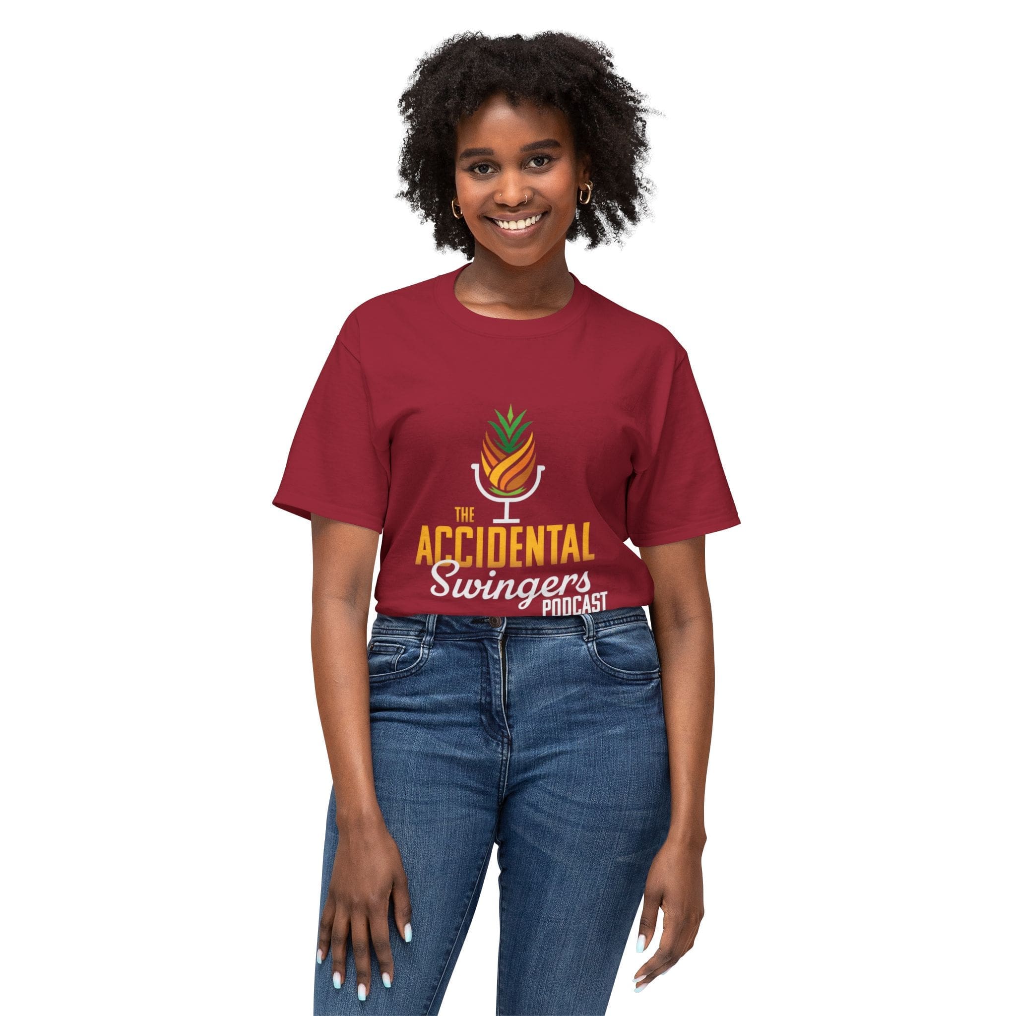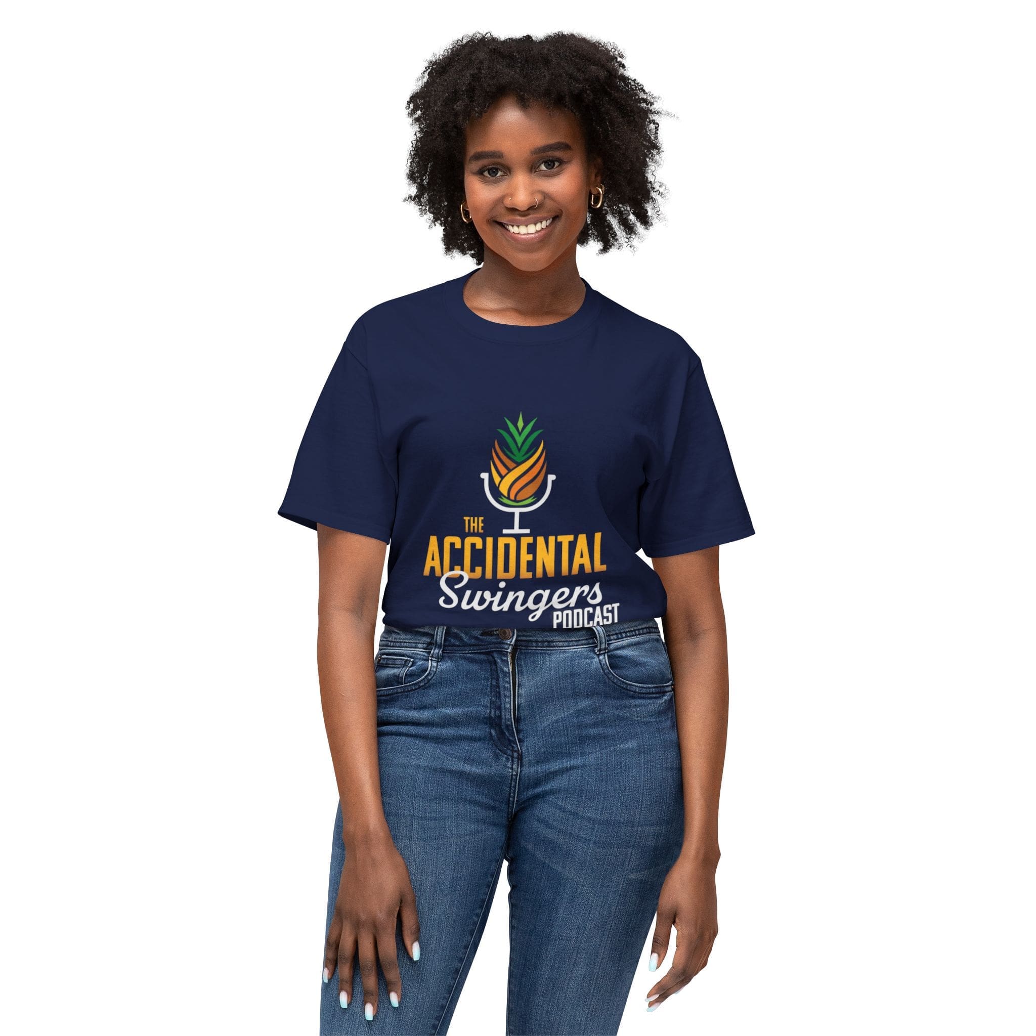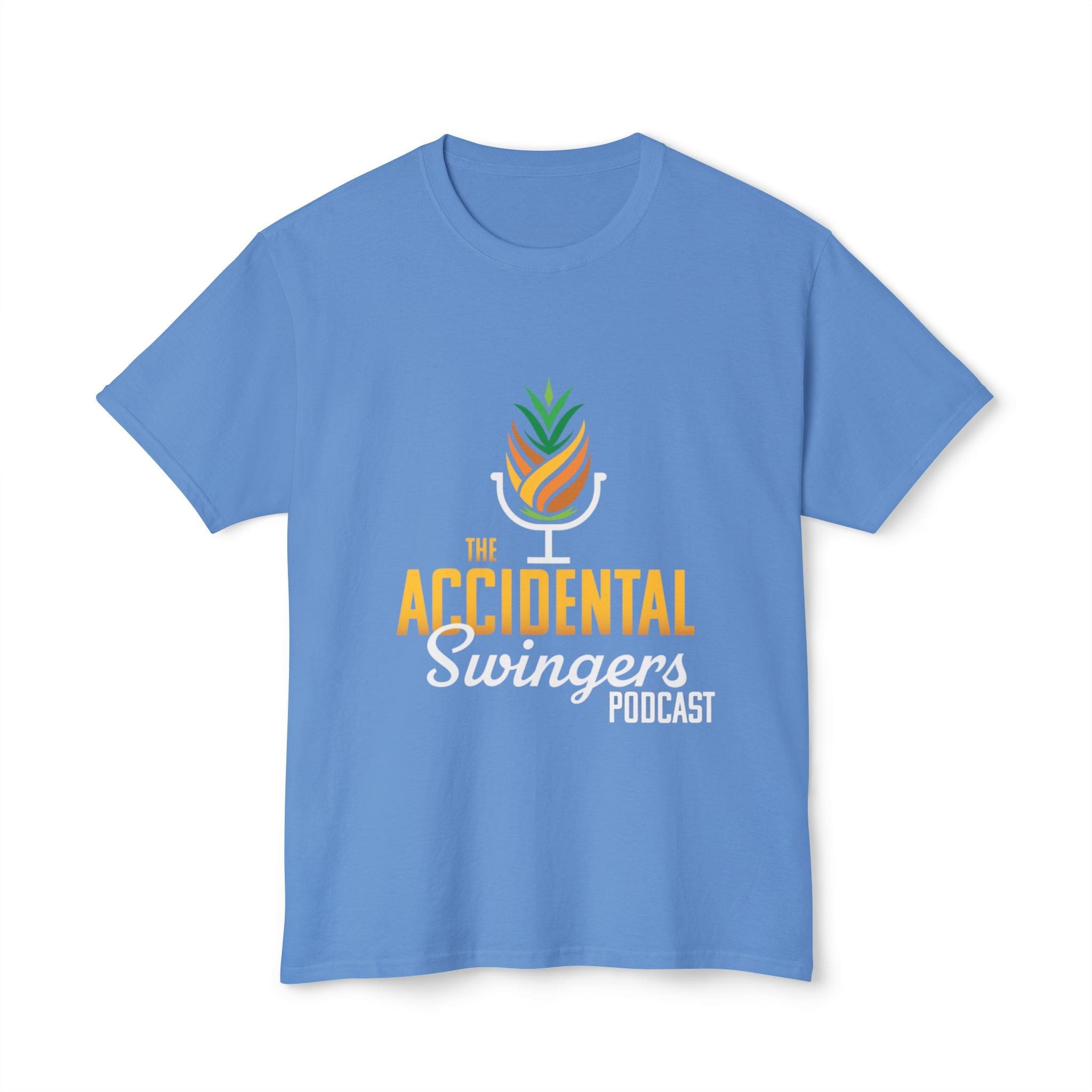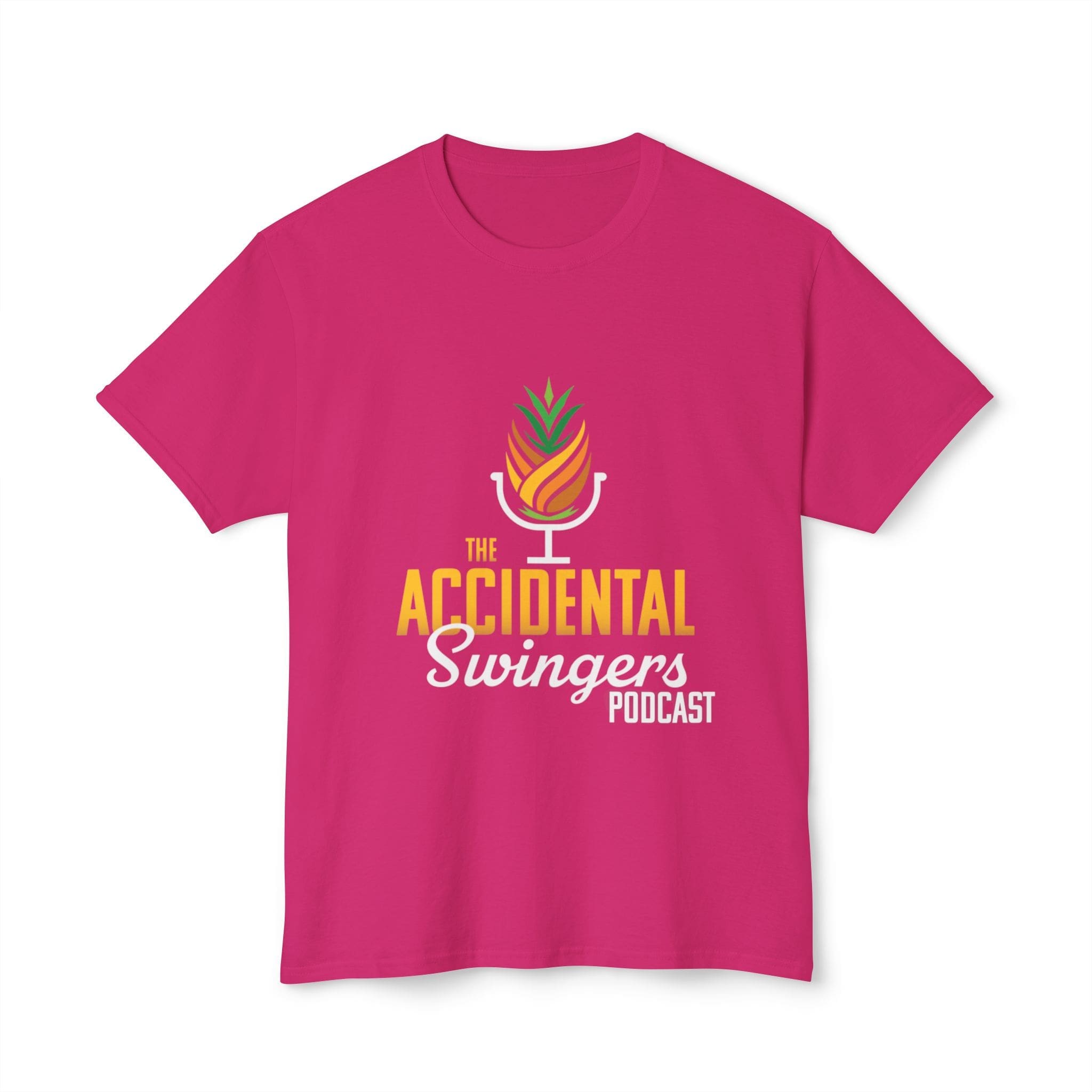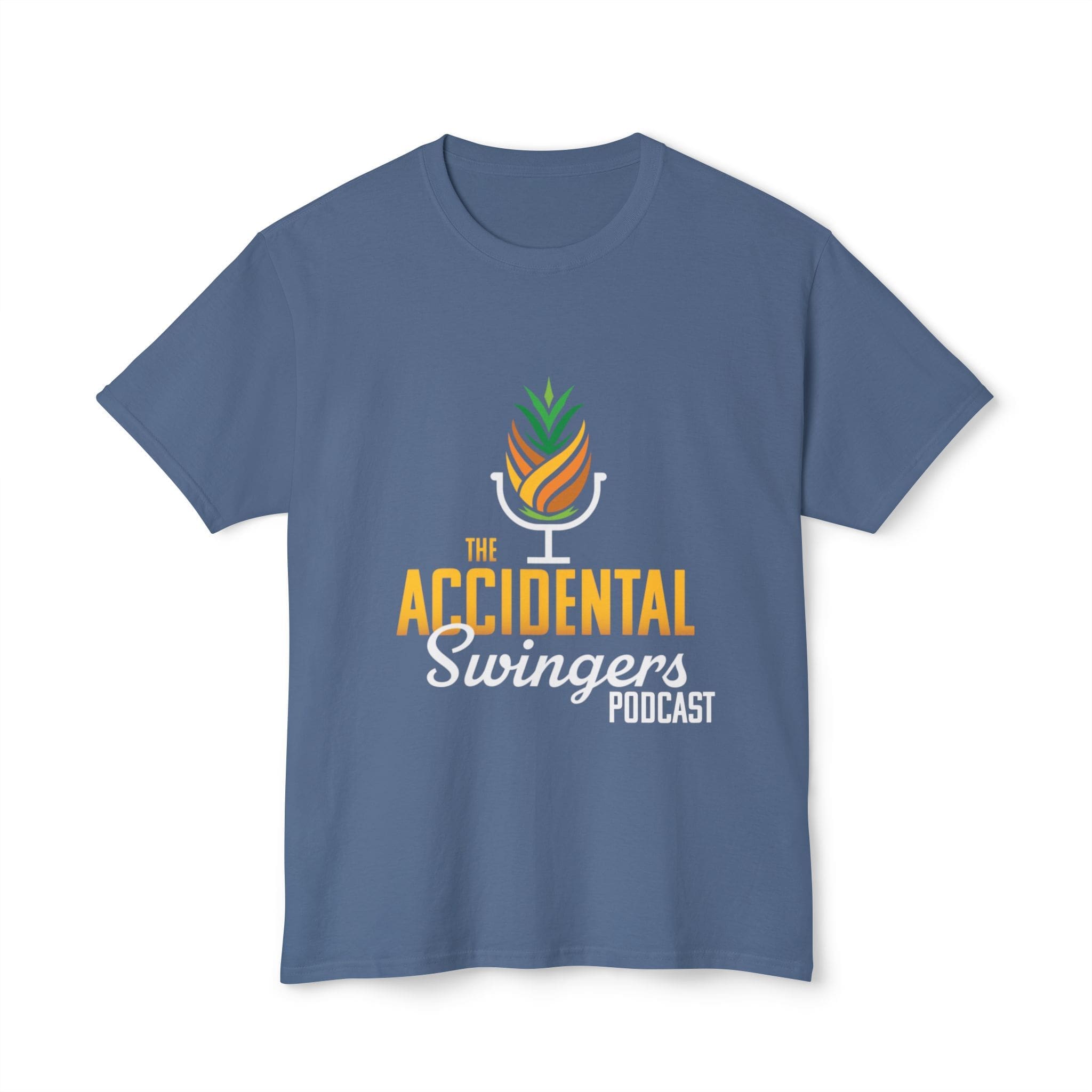 Elevate your everyday wardrobe with our Accidental Swingers Podcast Unisex HD Cotton™ T-shirt! Crafted from 100% cotton pre-shrunk jersey, this tee is super comfy and super durable wash after wash. This tee offers a sleek and timeless look available in great colors. What’s more, it’s made with sustainably-sourced, USA-grown cotton, supporting ethical and eco-friendly practices.